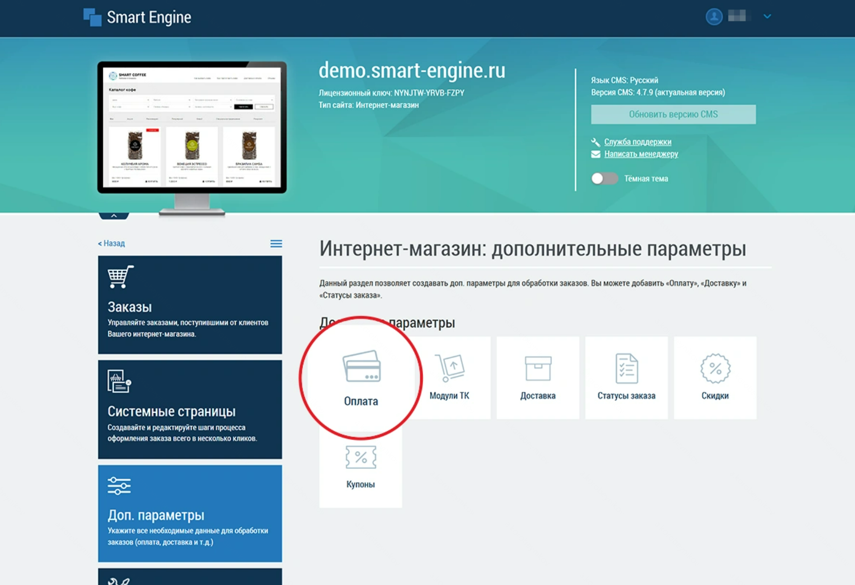 Включите модуль оплаты Т-Банка → заполните поле Название (выводится в корзине) → поля: Терминал и Пароль.
