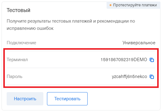 Чтобы получить данные тестового терминала, воспользуйтесь одним из способов: